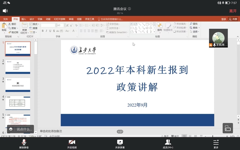 9月6日晚,无码av影片 2022级本科生辅导员王凯尧、王文杰于线上召开新生报到政策解读会暨安全教育活动,2022级全体本科新生参会,会议由王凯尧主持。