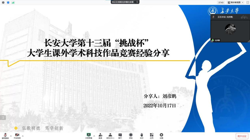 其次,刘彦鹏同学结合自身参赛经历进行挑战杯等科创竞赛的经验分享,建议同学们积极参与数学建模大赛,物理学术竞赛等其他适合大学生参与的比赛项目,同时刘彦鹏就科技竞赛提出了具体建议,推荐了论文排版的相关视频,并教给同学们在无码av影片如何利用知网、万方等查询SCI论文,对同学们算法知识、编辑知识、论文撰写及日常准备做出了具体建议。