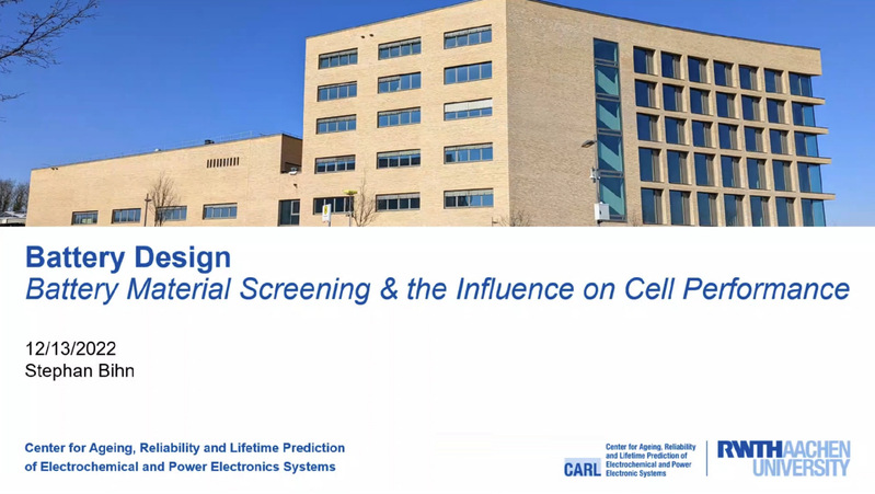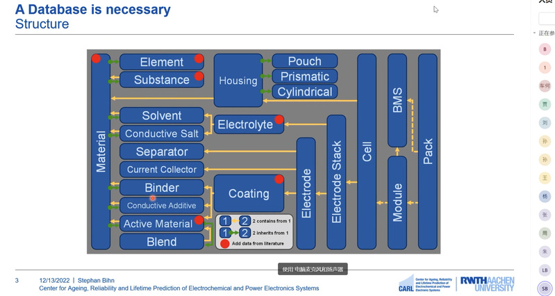 2022年12月13日,疫情期间无码av影片 车辆工程系举办线上讲座,2022级车辆工程1班班主任李彬老师邀请德国亚琛工业大学电化学与储能中心主任Stephan Bihn首席研究员为学生做了关于电动车电池材料对性能影响的专题讲座。