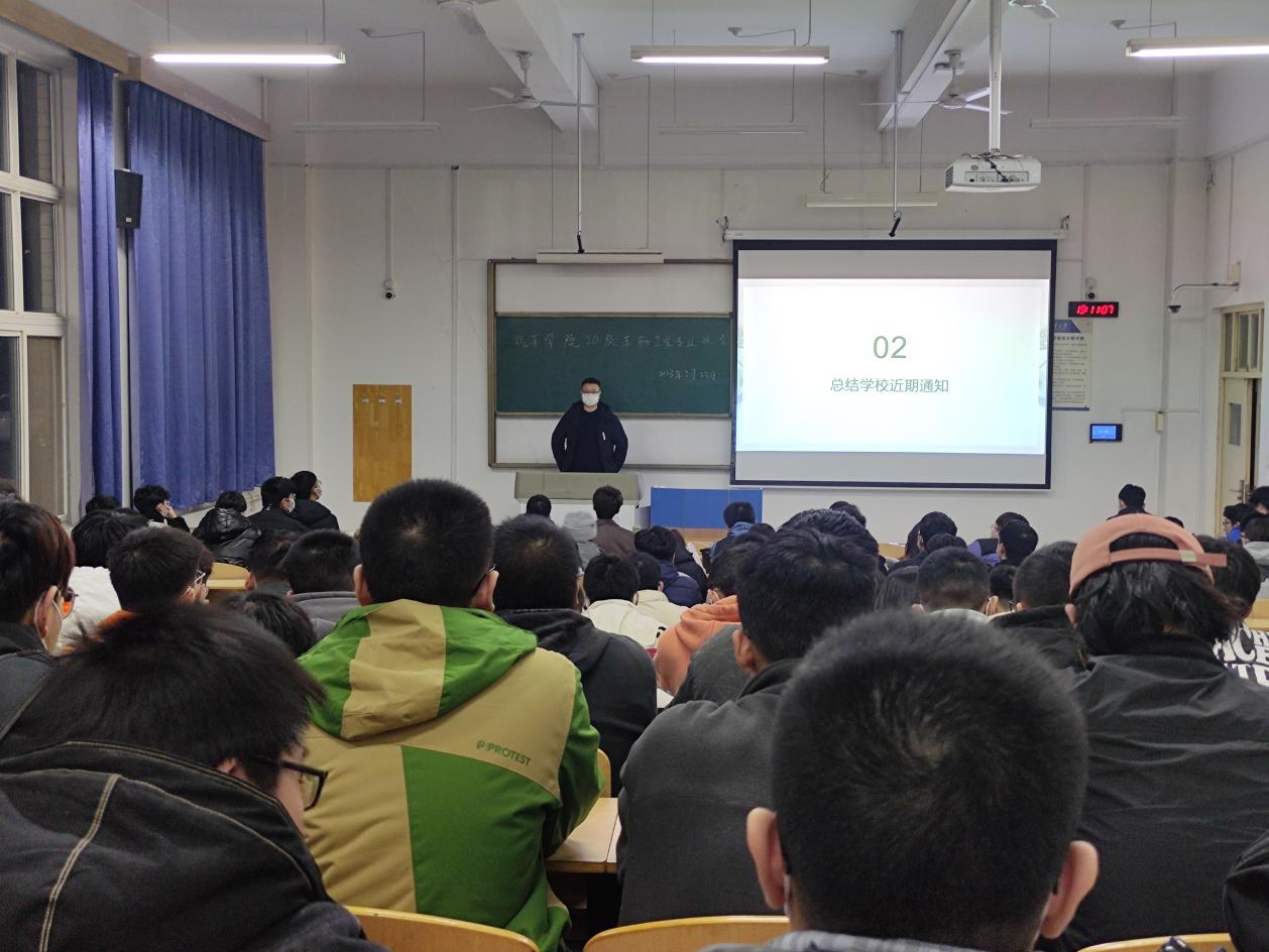 最后,辅导员杨磊进行了总结发言。他强调大三下学期是重要的窗口期、奠基期和提升期,同学们对此要有深刻认识。要葆有时不我待的紧迫感,结合个人的实际情况和特长爱好,尽早确立自己的毕业规划,明确升学或就业的目的,提前规划好人生路线,选择适合自己的发展方向。方向和路线明确后,就要锚定目标积极行动,争做“行动派”,拒绝“等靠要”。