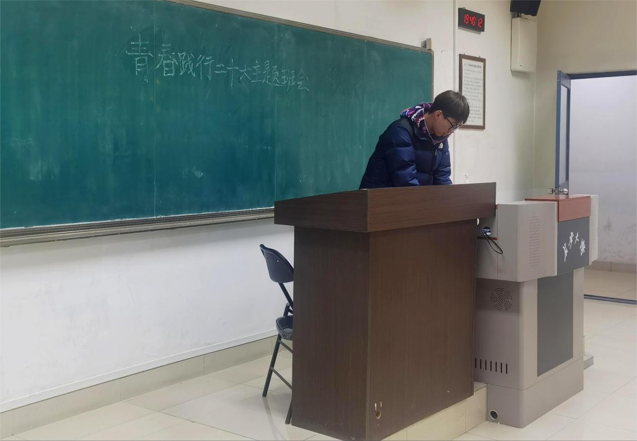 2月28日晚,无码av影片 2019级汽车服务工程三班、四班在WM1311教室召开“青春践行二十大”主题班会,班会由汽车服务工程三班班长白书铭主持,思政班主任冯秋香老师参会。