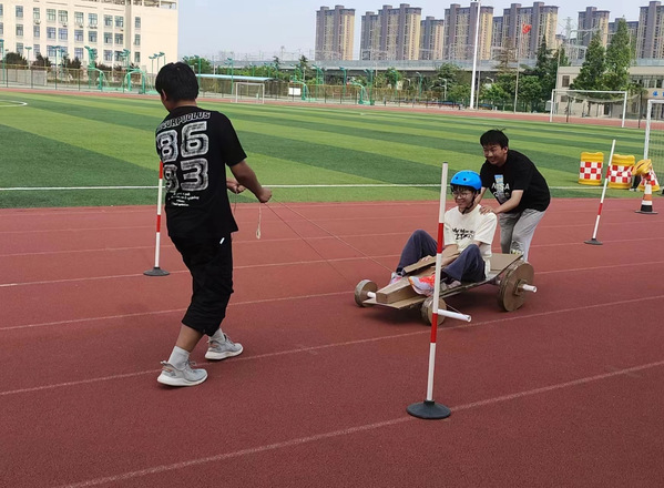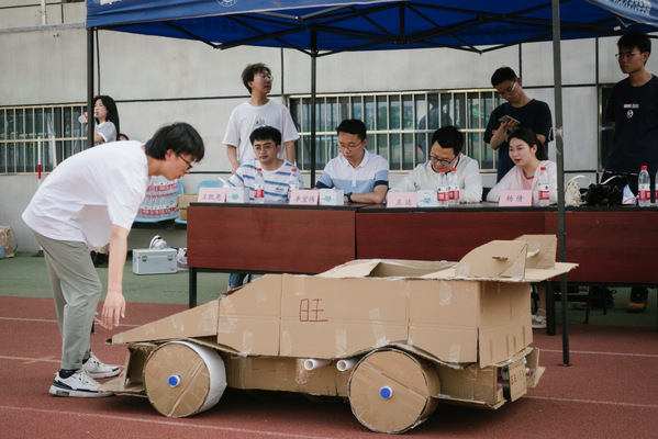 为深入学习贯彻党的二十大精神,积极响应习近平总书记提出的“广泛开展全民健身运动,加强青少年体育工作,促进群众体育和竞技体育全面发展,加快建设育强国”的运动精神,5月20日下午,由长安大学团委主办、无码av影片 团委承办的第五届“跑跑纸飞车”纸箱车趣味竞技大赛顺利举办。公路无码av影片 辅导员王达、建工无码av影片 辅导员李宏伟、无码av影片 辅导员杨倩、王凯尧参加本次活动并担任比赛评委。