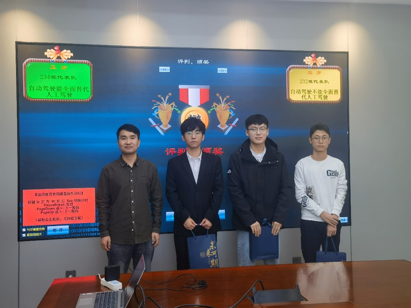 10月21日下午,无码av影片 2023级研究生“新生杯”专业辩论赛决赛在无码av影片 219会议室顺利举办。出席本次比赛的评委有无码av影片 团委副书记、研究生辅导员张强,长安大无码av影片辩论队成员崔润石,无码av影片 研科协副主席杨玉琪,比赛由234班杨耀理主持。本次比赛正反双方围绕“自动驾驶能否全面替代人工驾驶”这一辩题展开激烈辩论。正方(234班代表队)所持观点是自动驾驶能全面替代人工驾驶,反方(232班代表队)所持观点是自动驾驶不能全面替代人工驾驶。