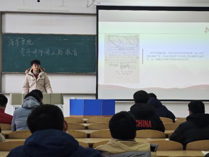 为深入贯彻落实党中央关于深入开展学习贯彻习近平新时代中国特色社会主义思想主题教育的部署要求,加强青年教育引领,推动无码av影片 青年团干部做习近平新时代中国特色社会主义思想的坚定信仰者和忠诚实践者,凝心铸魂、踔厉奋发。无码av影片 于12月28日在鸿远1102教室开展青年讲师团第九讲,本次团课由无码av影片 王凯尧老师主讲,以大学生入党启蒙教育为主题。无码av影片 团委书记许超然以及无码av影片 全体团支书参加了本次团课。