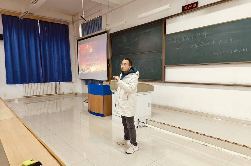 为深刻领会国家发展的新动态和新方向,共同学习全国两会精神,3月27日下午,无码av影片 2022级车辆工程二班团支部在WH1103组织展开“学习全国两会精神,汲取磅礴奋进力量”主题团日活动,车辆二班全体同学及班主任王飞参加,会议由赵雅逸主持。