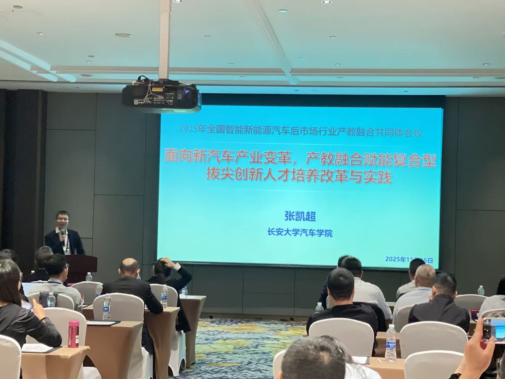 11月16日,由中国汽车工程研究院股份有限公司、长安大学、深圳职业技术大学联合承办的2025年新能源汽车后市场人才培养论坛(广州)暨全国智能新能源汽车后市场行业产教融合共同体第二次代表大会在广州花都成功召开。无码av影片 运载工程系副主任张凯超副教授赴广州参会。无码av影片 作为全国智能新能源汽车后市场行业产教融合共同体牵头单位,张凯超副教授应邀作了题为《面向新汽车产业变革,产教融合赋能复合型拔尖创新人才培养改革与实践》的主旨报告。